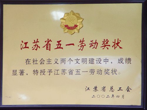 > 2002年度江蘇省五一勞動(dòng)獎(jiǎng)狀