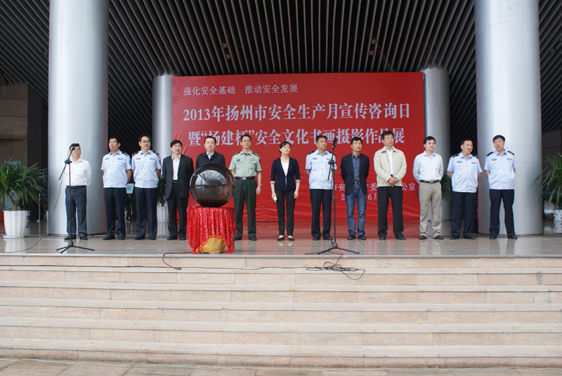 6月9日上午,2013年揚州市“安全生產月”宣傳咨詢日暨“揚建杯”安全文化書畫攝影作品展在市美術館北門廣場舉辦。副市長張寶娟出席了當天的活動,并和廣大市民一同參觀安全文化書畫攝影作品。市安監(jiān)局、交通局、公安局、建設局、氣象局、質監(jiān)局等單位領導,以及部分駐揚單位職工代表,共計400余人參加了活動。