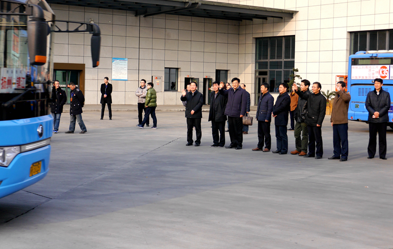 市交通運(yùn)輸局副局長(zhǎng)晏明、集團(tuán)公司總經(jīng)理、黨委書記吳忠俊分別對(duì)春運(yùn)工作情況進(jìn)行了匯報(bào)。丁市長(zhǎng)強(qiáng)調(diào)要繼續(xù)強(qiáng)化安全責(zé)任落實(shí),不斷提升服務(wù)質(zhì)量,確保廣大旅客走得及時(shí)、走得舒心、走得安全。下午4點(diǎn),揚(yáng)州發(fā)往四戶、南京、鎮(zhèn)江、儀征、淮安方向的5輛末班車和數(shù)輛定制客運(yùn)班車,在車場(chǎng)上一字排開,丁市長(zhǎng)登上班車,為即將返鄉(xiāng)的旅客送上新春祝福,并與駕駛員親切握手,送上慰問品,叮囑駕駛員沿途一定要注意行車安全,確保將旅客平安送達(dá)。