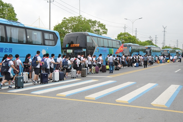 江蘇揚(yáng)汽集團(tuán)承擔(dān)了此次新生運(yùn)輸任務(wù),由旅游出租分公司牽頭,抽調(diào)快客、快鹿等各有車單位的大客車38輛,運(yùn)送樹人中學(xué)師生近2000人。