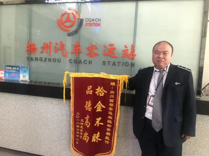 今天上午一早,揚州西部樞紐客運站站長室就收到了來自天津市武清區(qū)市民朱朝艷郵來的錦旗和熱情洋溢的感謝信,感謝揚州站員工戴偉拾金不昧的高尚品德。