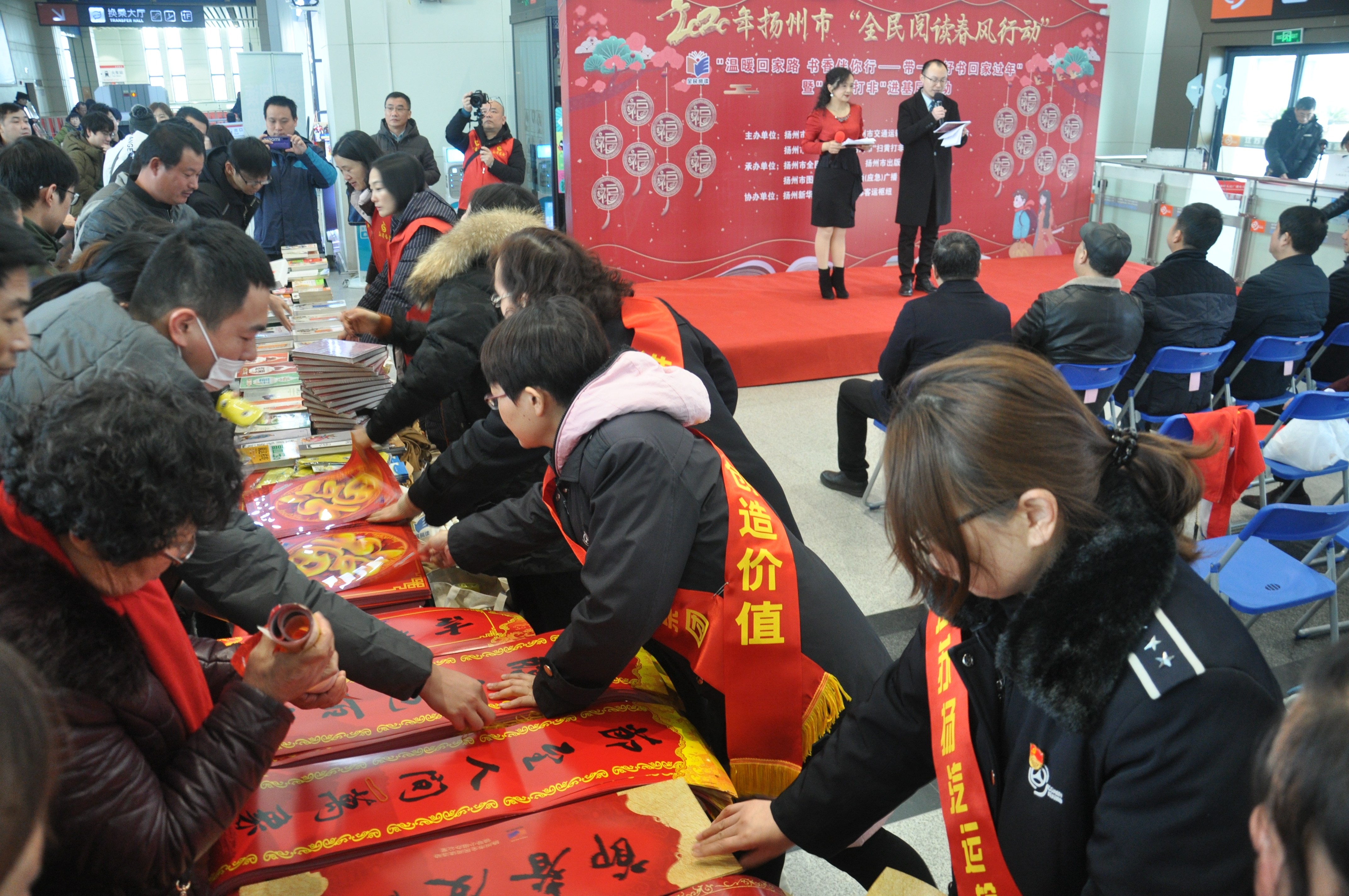 2020年1月14日上午,揚(yáng)州市“全民閱讀春風(fēng)行動(dòng)”暨“掃黃打非”進(jìn)基層活動(dòng)在揚(yáng)州汽車(chē)站候車(chē)大廳隆重舉行。