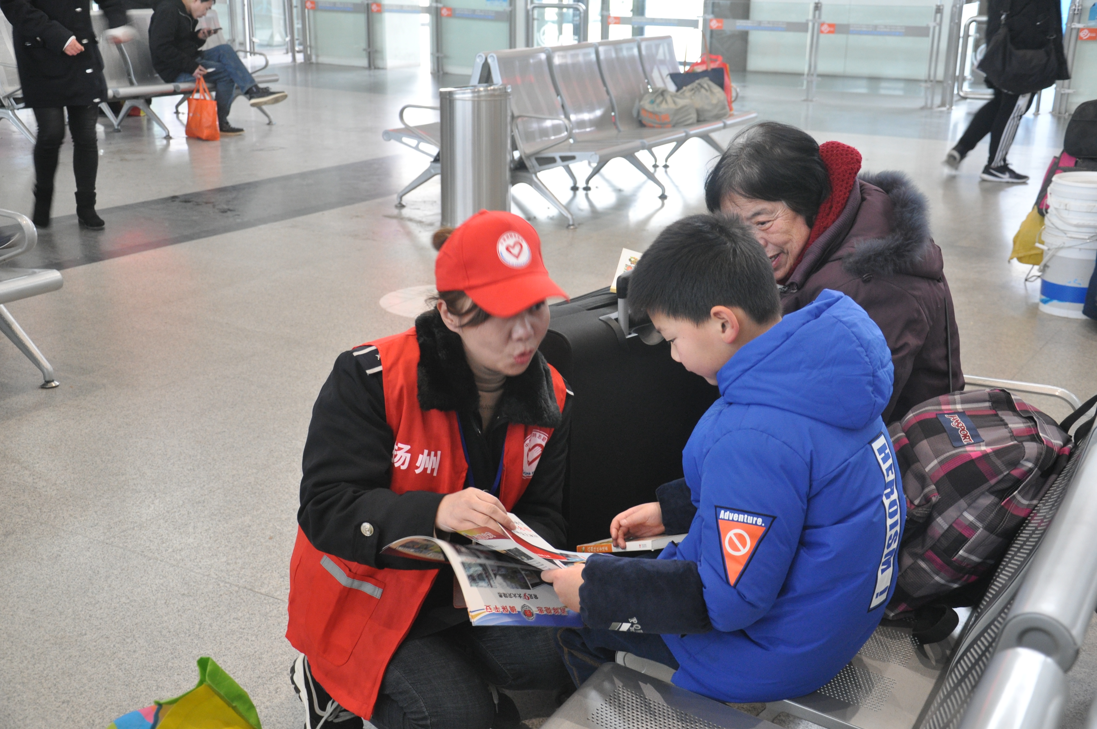 活動(dòng)現(xiàn)場(chǎng)提供了種類(lèi)繁多的書(shū)籍和春聯(lián),旅客們?cè)谛麄髋_(tái)前駐足,為孩子、親人或自己精心挑選,氣氛熱烈。活動(dòng)現(xiàn)場(chǎng)還安排了揚(yáng)汽集團(tuán)志愿者向來(lái)往旅客進(jìn)行消防安全知識(shí)的宣傳和講解。
