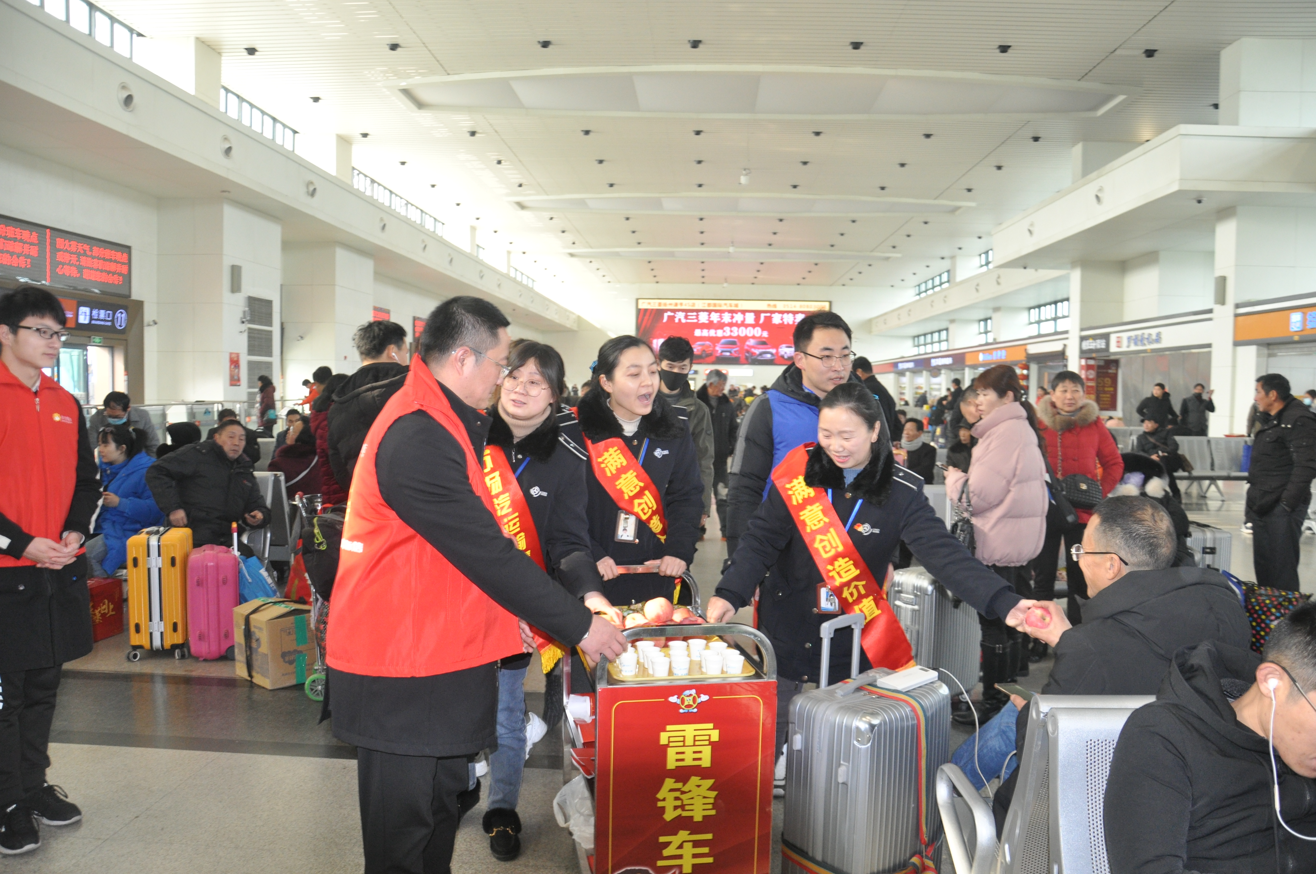 在揚州汽車站的候車大廳里,我們揚汽的志愿者們也在忙碌著,為歸鄉(xiāng)的務工人員送上了熱飲和湯圓送到讓旅客們在寒冬里感受著家的溫暖。歸鄉(xiāng)的務工人員背著行囊,手中拿著福袋,在揚汽志愿者的幫助下順利到達了檢票口并登上了回家的大巴。“情滿旅途、溫馨相伴”,我們揚汽的每一位職工將一直守護著民工朋友的歸途。