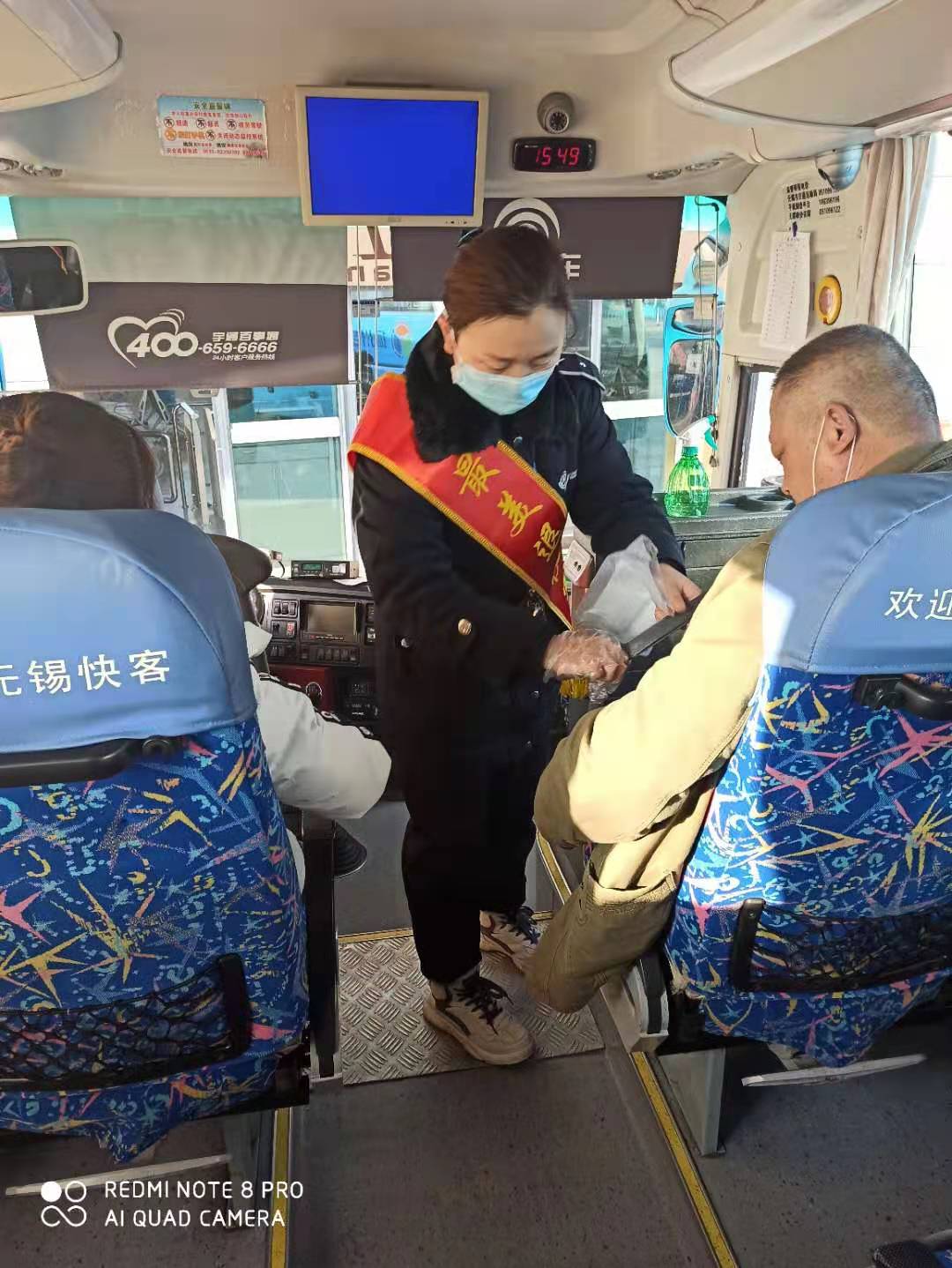 “您乘坐的車輛已經(jīng)消毒過,請放心上車…,老人家,你倆戴的口罩破了,我這有新的,請你換上…,請大家保持一米距離檢票,時間充裕,不會耽誤大家行程…,請大家檢票上車后,系帶好安全帶,口罩不能摘…”。一連串的溫馨提醒和戴著口罩仍在眉宇間“跳躍”著的笑容,讓旅客感到十分暖心。口不停、手不停每天數(shù)百遍地完美重復(fù)為旅客服務(wù)的場景,正是她幾年軍營生活、過硬作風(fēng)養(yǎng)成的積淀,更是她退役轉(zhuǎn)崗后,愛崗敬業(yè)的生動寫照。前幾日的一天下午,有位蘇州的旅客一旁候車時,看到當(dāng)班吳琳檢票發(fā)車時嫻熟的連貫動作和麻利果斷指揮發(fā)車標(biāo)準(zhǔn)旗語手勢時,情不自禁地掏出手機,“啪差…”拍個不停,嘴里還自言自語道:“這個畫面好,這個畫面好…”。