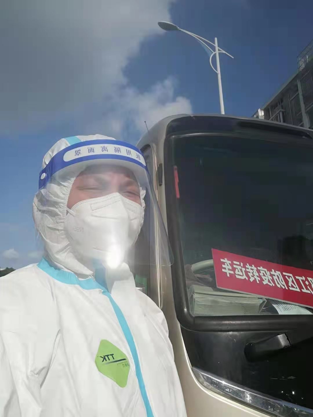 轉(zhuǎn)運工作異常艱苦,尤其是轉(zhuǎn)運初期,大量的人員需要轉(zhuǎn)運至隔離區(qū),畢克駐在一線全天24小時待命,接到任務(wù)立即穿戴防護服出發(fā),最多的時候每天轉(zhuǎn)運15趟次,只能睡三四個小時。疫情就是命令,生命重于泰山,防控的過程,就是與時間賽跑的過程。7、8月份正值高溫酷暑,他穿著封閉的防護服,一遍遍的從小區(qū)將次密者送到隔離點,每轉(zhuǎn)接一次,就要換一身防護服,渾身的汗水揮發(fā)不掉,硬是悶在密閉的防護服中,一天下來,皮膚被汗水浸泡的發(fā)白,手掌反復蛻皮。高溫高濕的環(huán)境、高強度的工作所帶來的考驗一般人難以忍受,而他卻日復一日重復著同樣的經(jīng)歷。