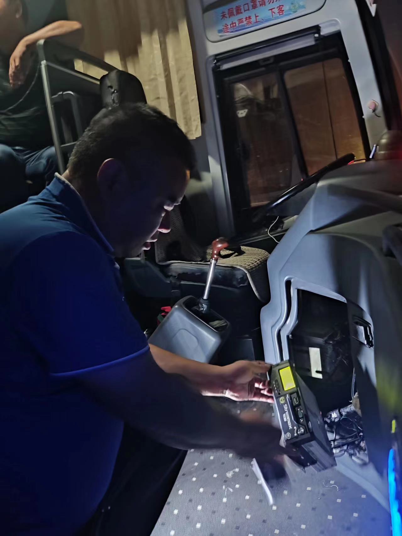 由于假期高速擁堵,車輛進站時間延誤,班車駛進車站后已到晚間,搶修人員趁著夜色立即對車輛的主動智能防控掉線原因進行全系統(tǒng)排查。經(jīng)全面檢查后,發(fā)現(xiàn)主機內(nèi)SIM卡損壞導致故障。為保障車輛明日的正常運作,搶修師傅立即對SIM卡進行更換,并對主動智能防控系統(tǒng)進行詳細檢查,順利的完成了此次搶修工作。