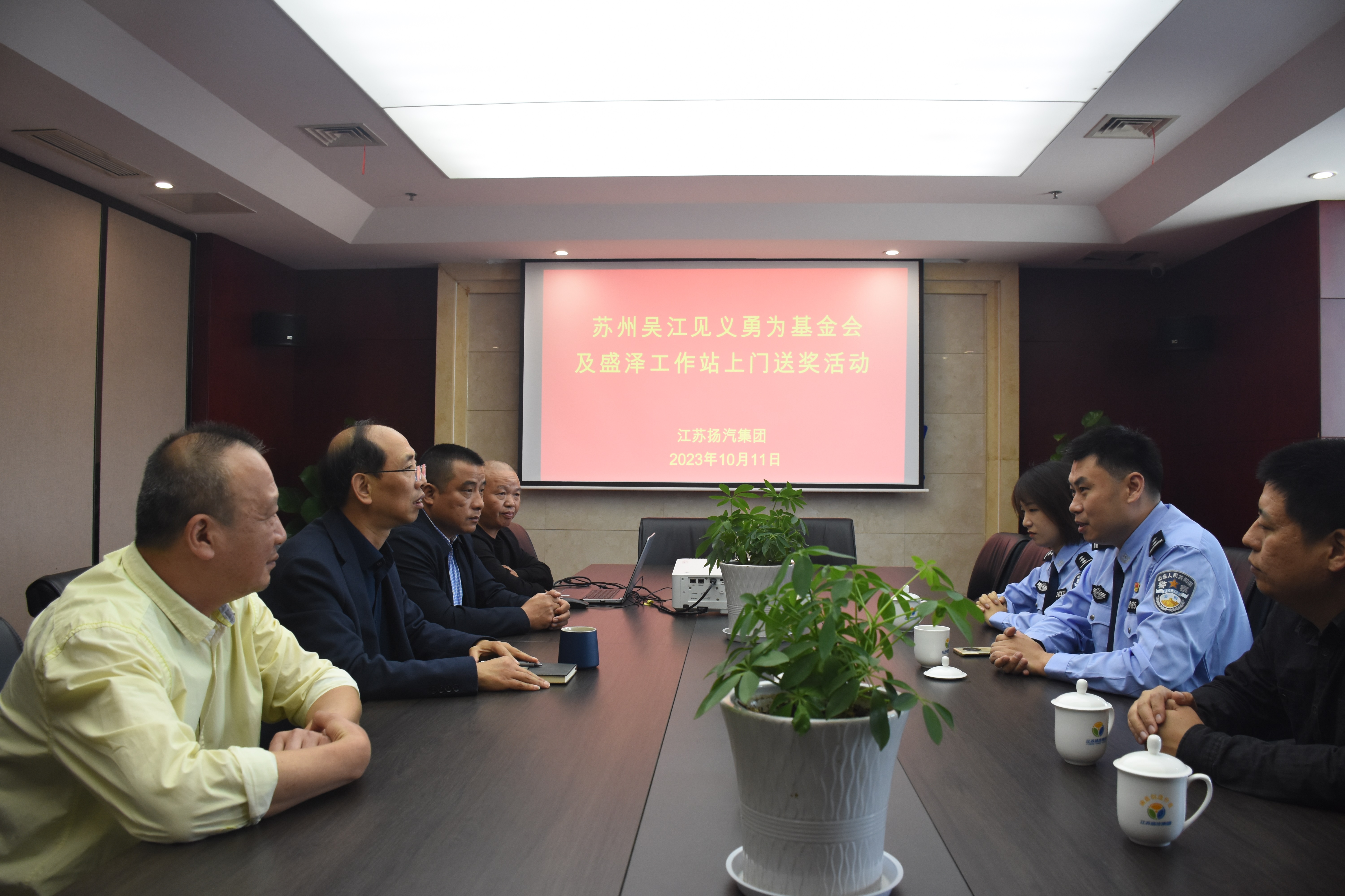 10月11日,蘇州市吳江區(qū)見義勇為基金會及盛澤工作站一行來到揚(yáng)汽集團(tuán),為勇救突發(fā)心臟病乘客的大巴車司機(jī)郭安鳳上門送獎,表彰他見義勇為的感人事跡。