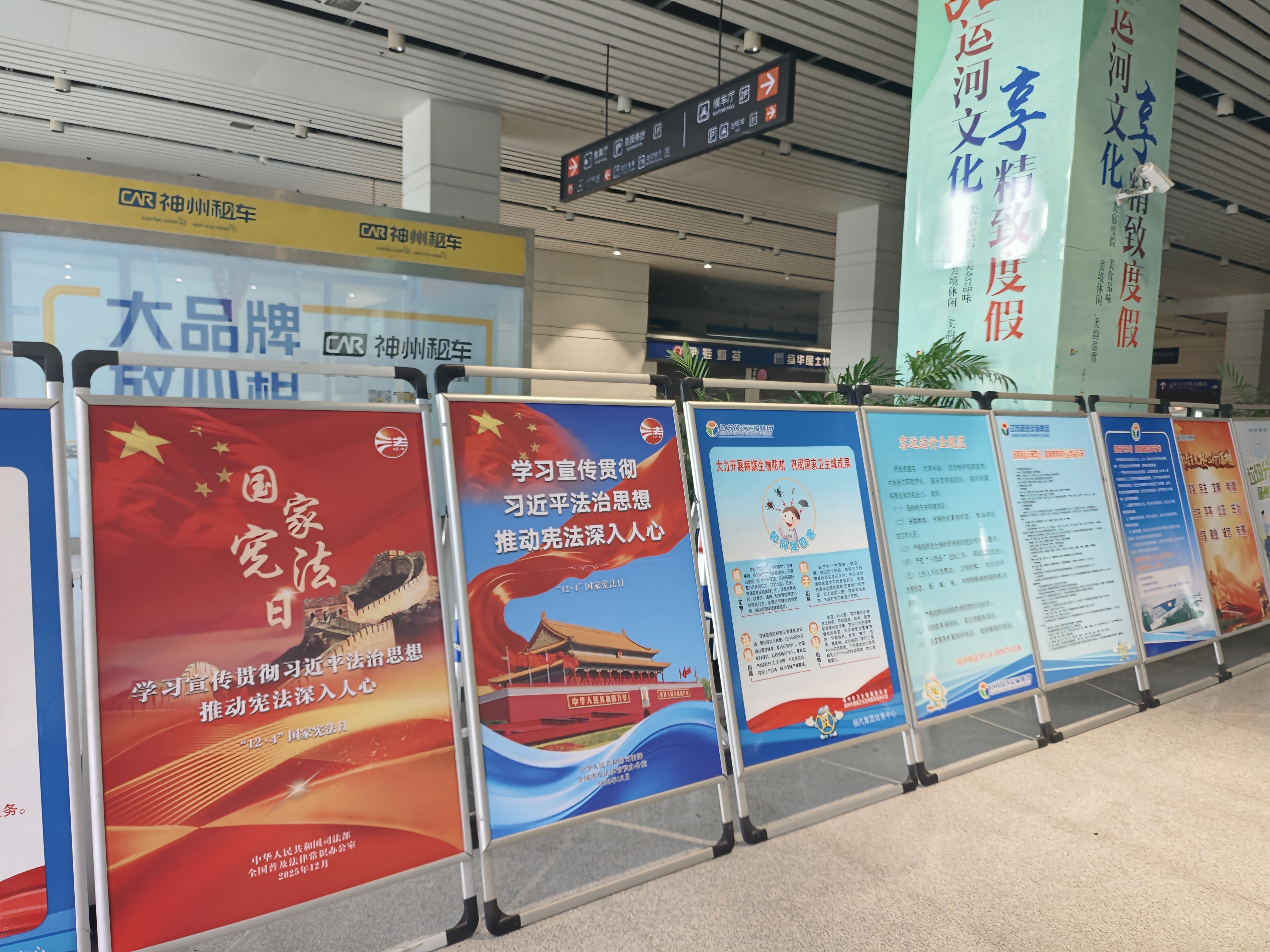 為營造濃厚宣傳氛圍,集團充分利用線上線下宣傳陣地。在線下,集團充分利用交通服務(wù)窗口優(yōu)勢,在東部樞紐、西部樞紐的候車區(qū),科目三考場候場區(qū)及集團辦公區(qū)等場所,不僅通過電子大屏滾動播放宣傳內(nèi)容,還精心布置了系列主題戧牌,使憲法知識融入日常工作與服務(wù)場景。線上宣傳同步推進(jìn),通過發(fā)放學(xué)習(xí)資料,擴大了宣傳的覆蓋面和靈活性。